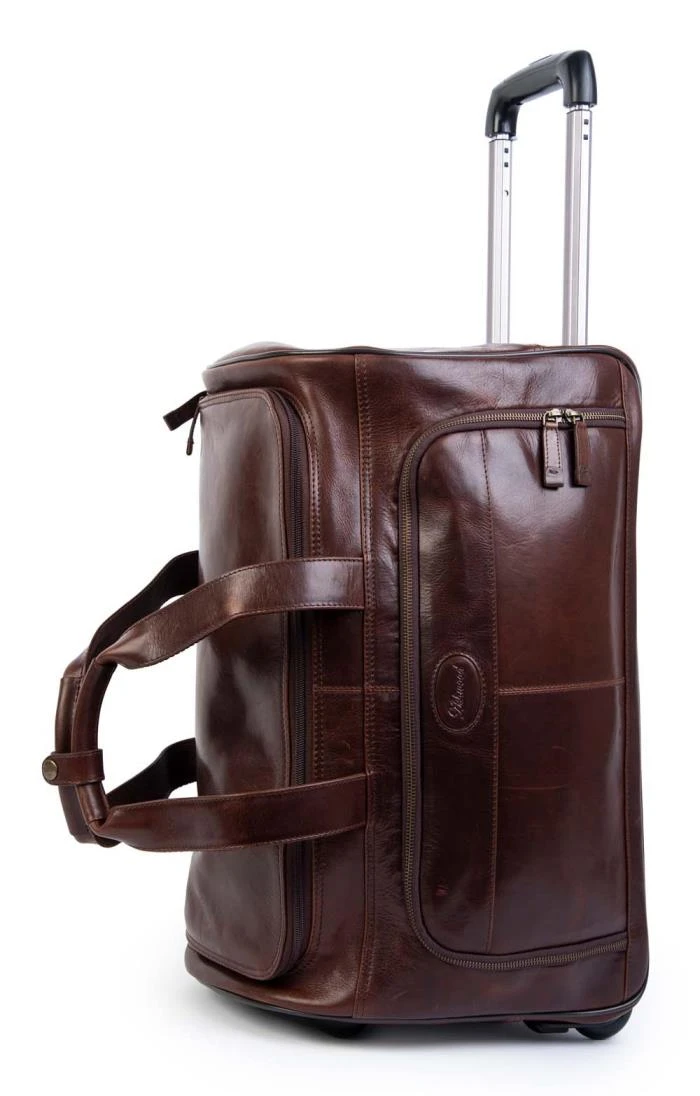 Practical, yet designed with luxury in mind, this wheeled holdall from Ashwood is crafted from 100% genuine leather. Benefitting from wheels and a handy telescopic handle, the bag has its own neat zip pocket and is designed for the gentleman on the go. In addition, there is an extra large zipped side pocket with internal organisers, a further zip pocket at the base. With a fully lined main compartment, this bag easily balances its robust nature with an inimitable stylishness.
