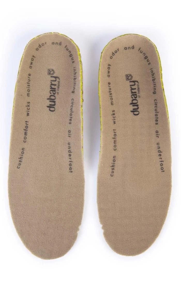 Dubarry Replacement Footbeds add superior comfort and fit to your Dubarry footwear. A sculpted heel area provides superior support while the EVA padding provides comfortable cushioning. The footbeds wicks moisture from the foot and inhibits odour and fungus. A biomechanical forefoot flex grooves to aid flexibility and the anti-slip understand ensures the footbed is firmly in place.