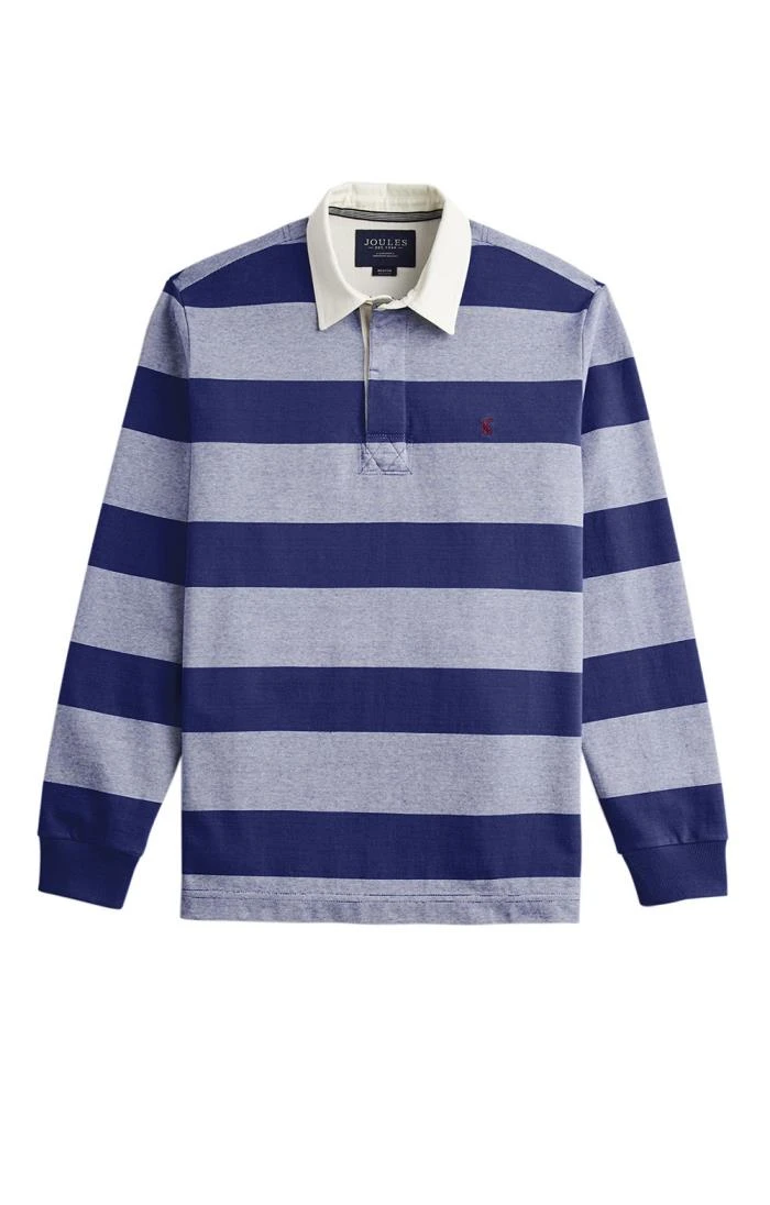 This Joules men’s Onside rugby top is a classic wardrobe staple for casual weekend outfit ideas. Crafted from premium cotton, it boasts a striking two-tone colour scheme which is accented by the plain white shirt collar and embroidered Joules logo. Pair with denims or chinos, and layer under a casual sleeveless gilet to complete the look.
