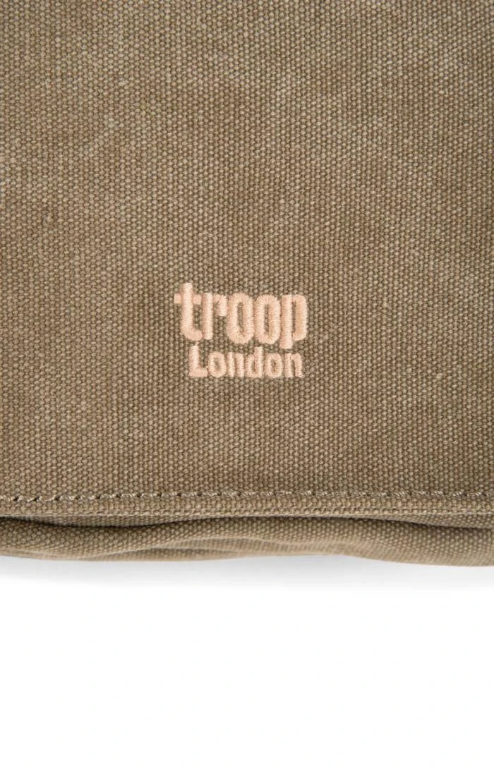 Made in durable canvas with leather details and brass plated fittings, the Troop small slant zip bag is a great way to keep all your essentials close to hand when on the go. An adjustable shoulder strap ensures the perfect fit while a zip that runs along the bottom of the bag allows you to increase its volume as and when you need to. With a secure zip pocket at the rear and a spacious pocket on the front flap with a stylish slanted zip it’s easy to keep all your accoutrements organised on your travels. Inside there’s a netted zip pocket, special slots for your phone and pens, and a full lining throughout with Troop embossed fabric.