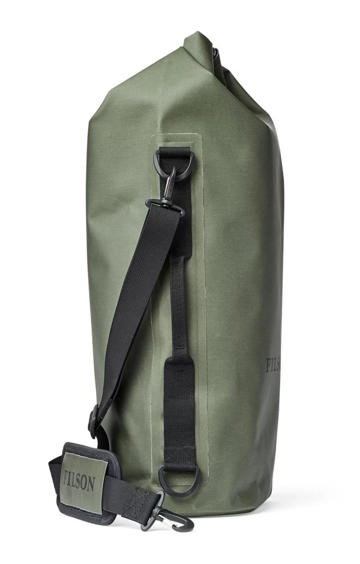 Material: hardwearing nylon.Buckled top.Roll top closure.Wipe clean with a damp cloth.Fully waterproof.Detachable shoulder strap.27L capacity.Dimensions: 29”H x 12.5”W x 7.5”D.