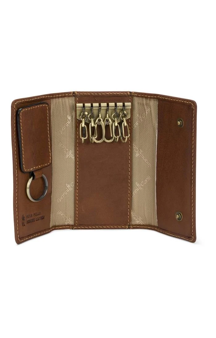 Made in premium leather by Italian specialists Gianni Conti, this leather key holder is made with all the care and attention to detail you would expect. Contrast stitching accentuates its clean lines and perfect proportions, while inside brass fittings provide storage and easy access for all your keys.