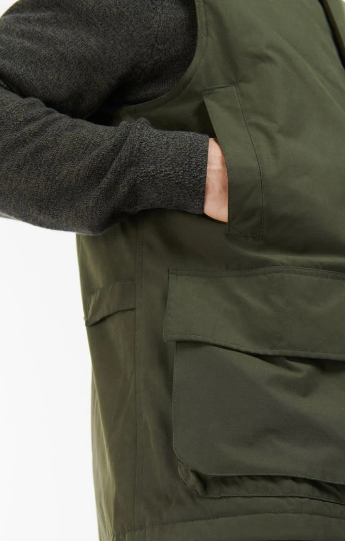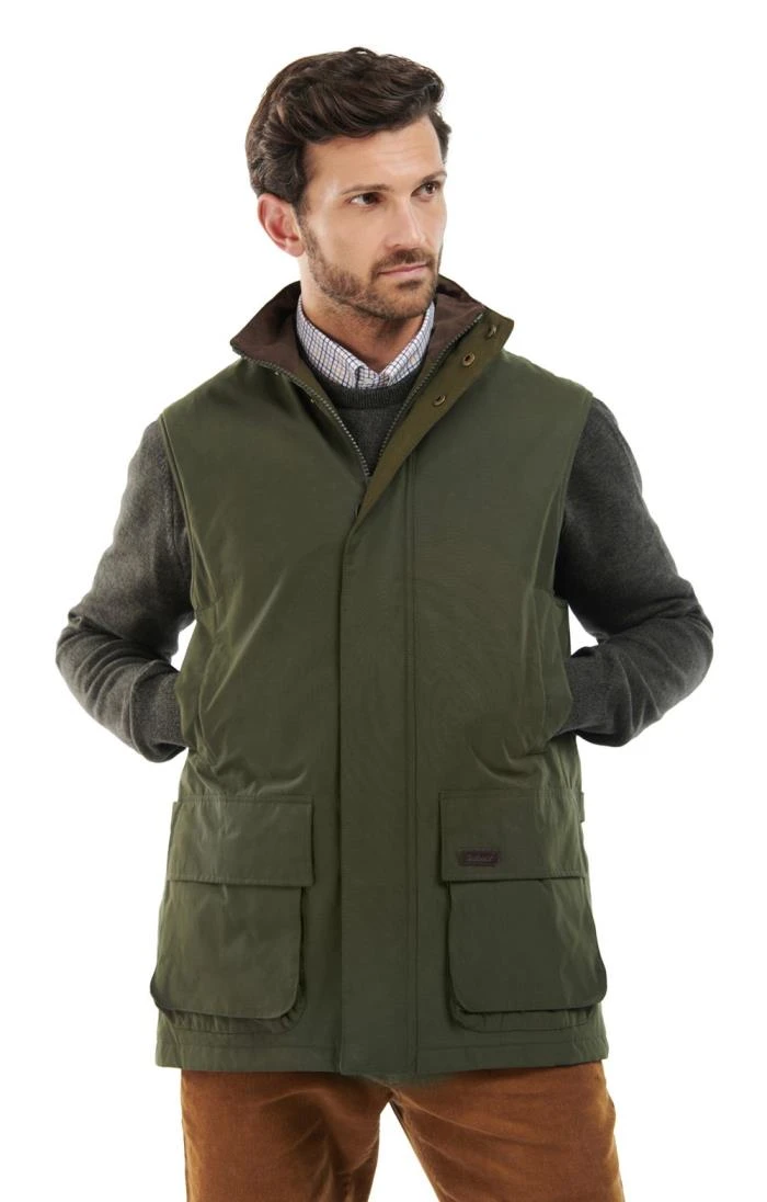 Fully insulated and designed to cope with bad weather, this Barbour Farringdon gilet is comfortable and functional. Sporting a classic Barbour wax jacket style, it boasts an adjustable waistline, two lower front bellows pockets, a concealed zip and a high collar with a soft microfibre lining.