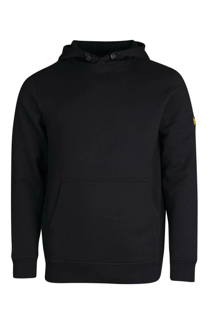 Material: 84% cotton, 16% polyester.Barbour International logo on sleeve.Machine washable at 30 degrees.Integrated hood with drawstring.