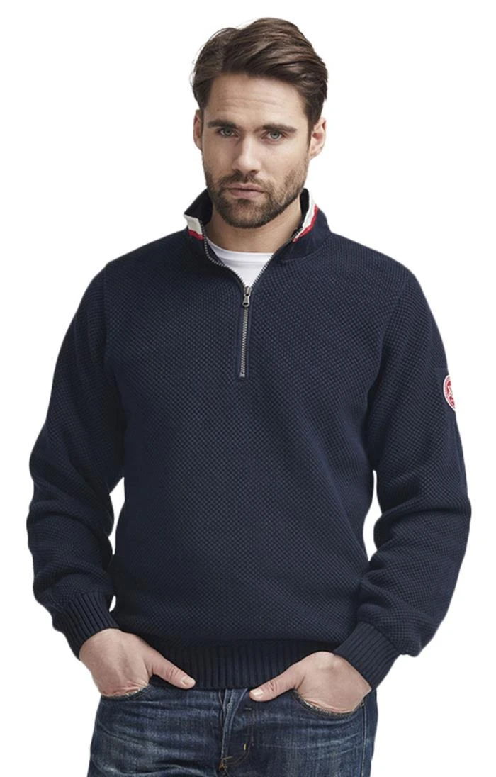 This classic windproof 1/4 zip sweater is a welcome companion on outdoor adventures. Made in comfortable cotton, it also features a lightweight windproof lining that will take the sting out of even the harshest of gales. With a woven collar and made with a structured knit that adds texture and warmth to the mix, this ever-popular style is as practical as it is stylish and versatile.