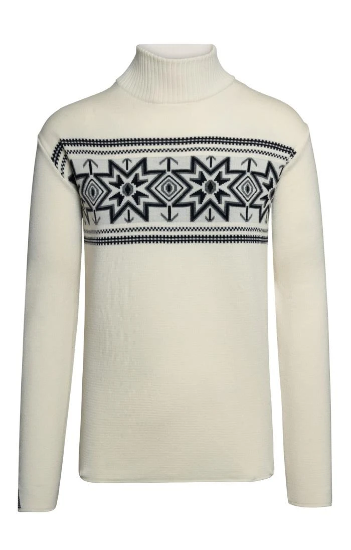 Carefully crafted from gentle yet durable Norwegian wool, the Tindejfell sweater from Dale of Norway is an ideal mid-layer. The retro design is inspired by a traditional sweater created first for the 1976 Innsbruck Winter Olympics and incorporates a new version of the classic Norwegian eight-petal rose in addition to snow crystals and winter stars. This sporty sweater is made of 100% skin soft merino wool and features a high neck to seal in warmth.