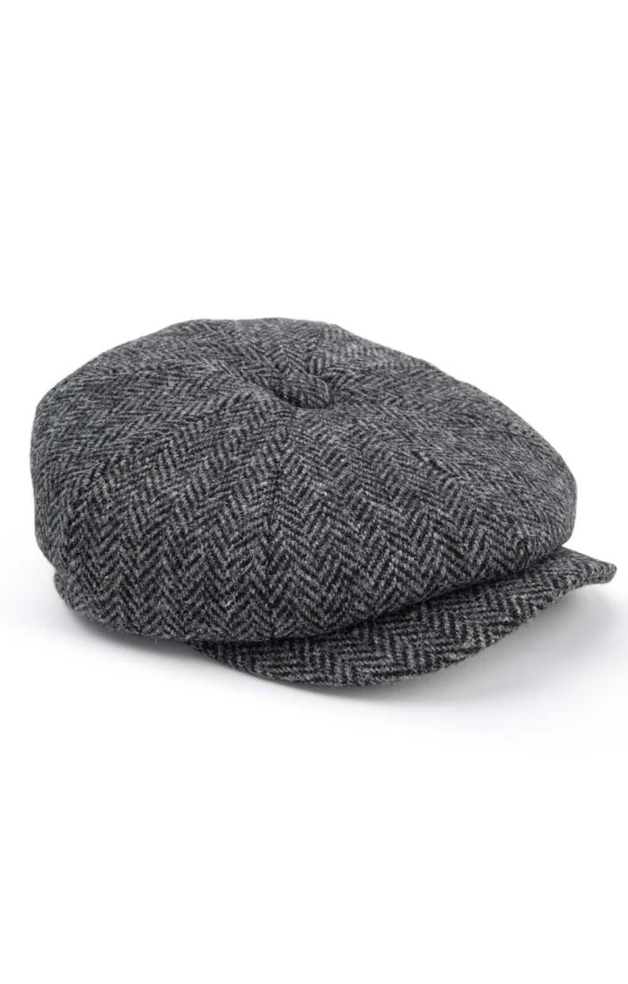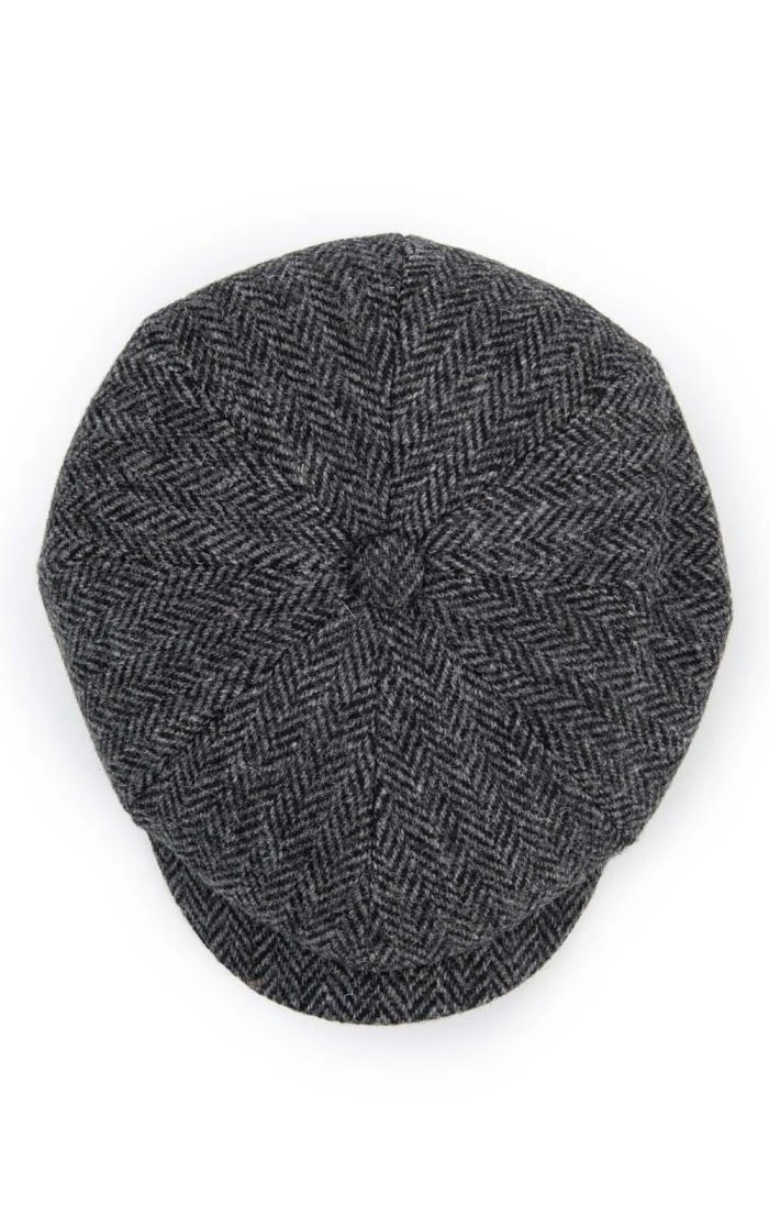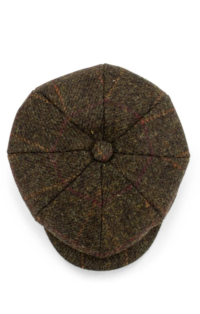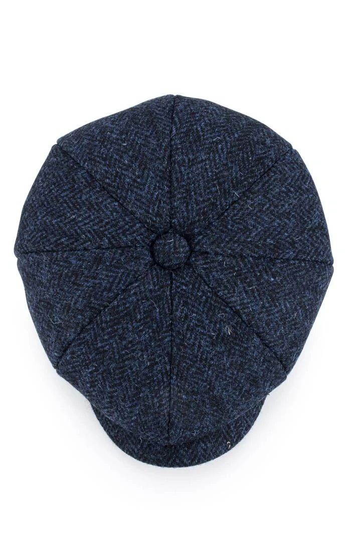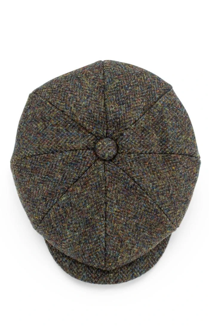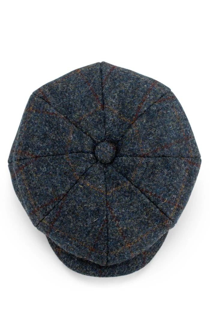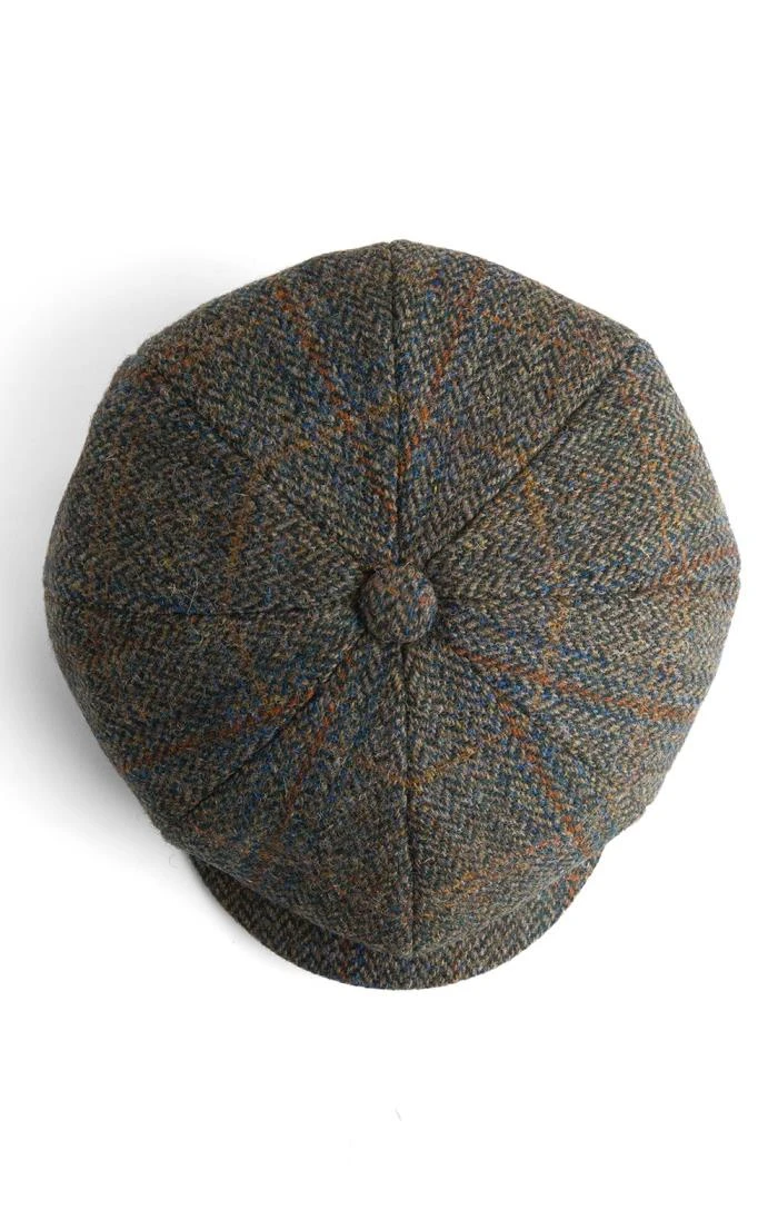 Quilted satin lining.Full 8/4 newsboy.100% Harris Tweed wool.Snap brim.Small = 6¾” 55cmMedium = 7” 57cmLarge = 7¼ 59cmExtra Large = 7½ 61cm