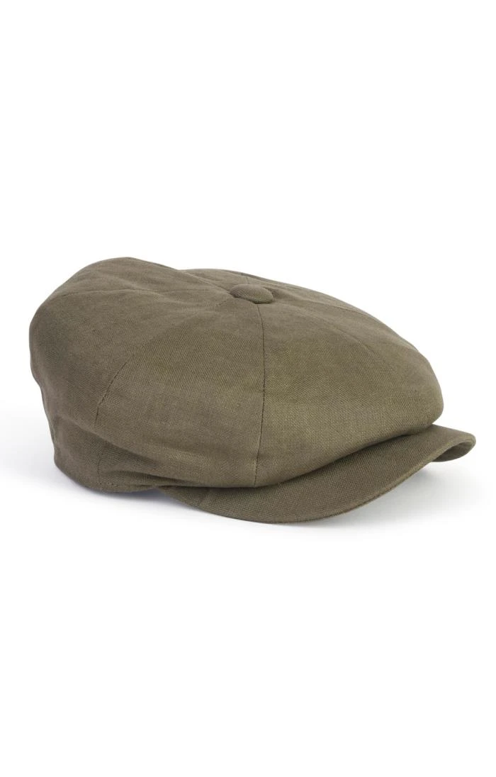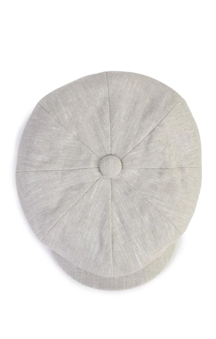 Cut in classic newsboy shape with 8 panels and a button at the top, cover up and keep cool in style in the 100% Irish linen Alfie cap by Failsworth. Finished with a sewn down brim and featuring a comfortable cotton lining, this is an ageless and effective addition to your spring-to-summer accessories collection.