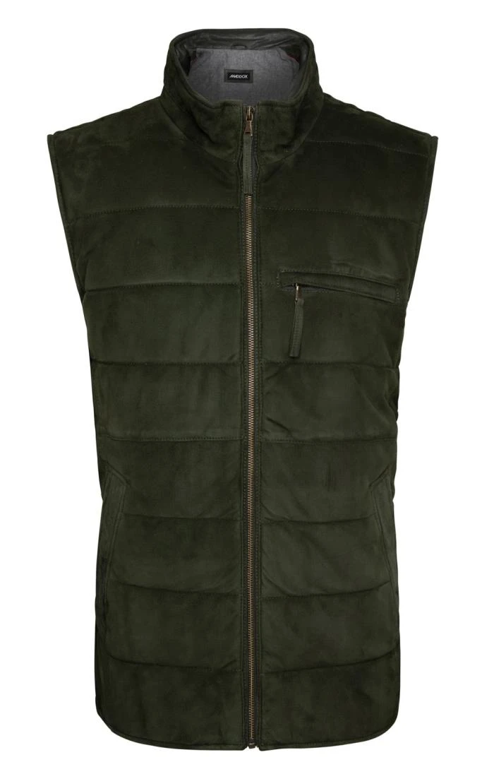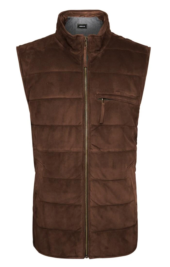 Timeless style joins with premium materials in this handsome goat suede quilted waistcoat for a smart yet comfortable item that will soon become a new season favourite. Featuring a zipped chest pocket, vertical slanted side pockets and front zip fastening.