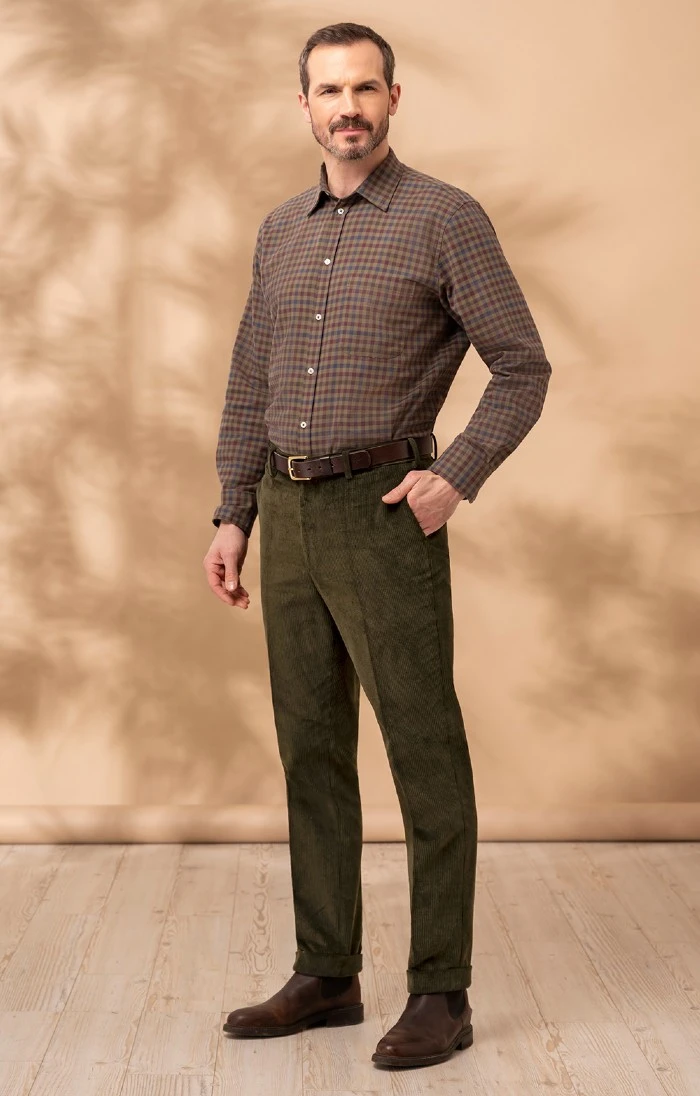 Now with an improved fit, these bestselling heavyweight cord trousers feature eight belt loops, a French bearer with two hook fastening, turn-ups, side pockets and a back hip pocket. A country stalwart, these exclusive House of Bruar creations combine classic comfort with rugged durability.