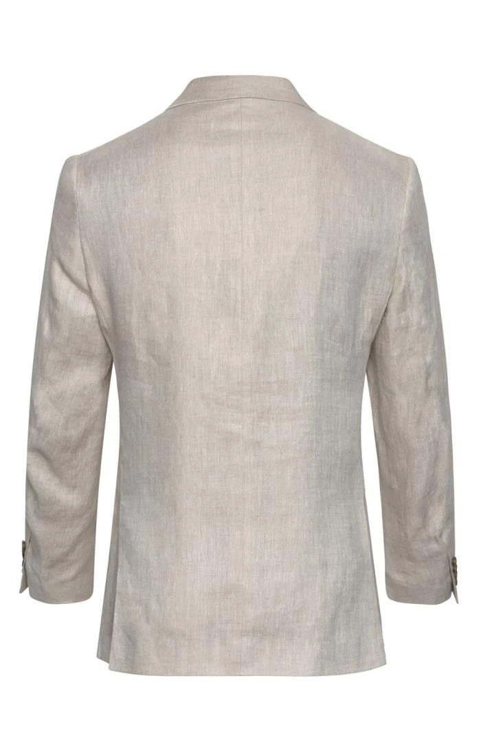 Cleanly cut in a classic line from crisp and cool linen, this exclusive herringbone pure linen jacket is a must-have for your Spring/Summer wardrobe. With its flapped pockets, four-button cuffs and double rear vent, it offers exceptional comfort and style when the weather is warming up. The perfect choice for special occasions this summer and beyond.