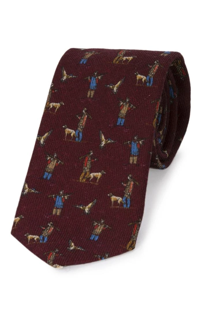 This wool shooting tie is a beautifully crafted tie that features a series of repeating shooting-related motifs. Designed and produced in Lake Como, a region of Italy famous for its high-quality textiles, this distinctive tie is in a class of its own.