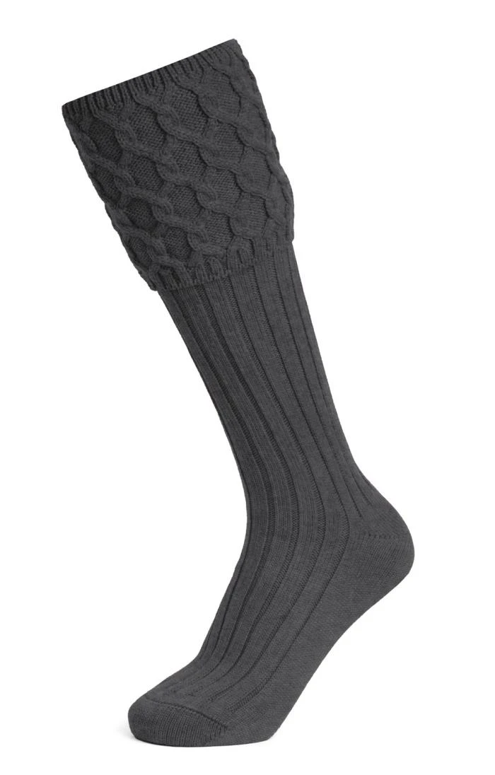 Made in Scotland and finished by hand, these men s kilt socks boast a chunky stitch cuff with a Celtic-inspired pattern and a ribbed main body. Simple yet undeniably stylish, this contemporary choice looks fabulous when worn with a traditional Scottish kilt.