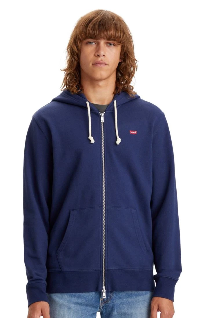 A fan brand-favourite, this men’s Levi’s original zip up hoodie is the perfect extra layer for casual days out and sporting events with friends. This attractive zipped sweatshirt is crafted from premium cotton with a superlatively soft feel. With long sleeves and an adjustable hood, it’s a versatile piece that you’ll find any excuse to wear.