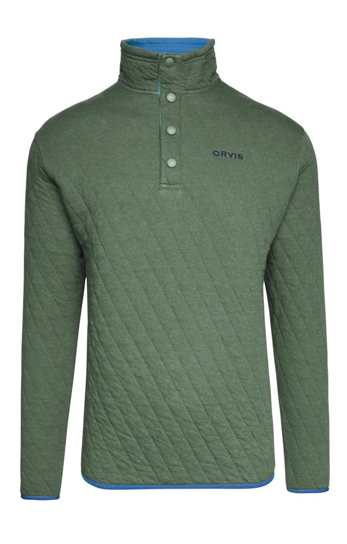 The Orvis Trout Bum quilt sweater is a novel design that features two layers of soft and comfy cotton jersey quilted together with an insulated filling for extra warmth. The mock neck with snap placket gives the sweater an authentic rustic feel, while stretch trim at the hem and cuffs gives an improved fit that’s great for keeping out the cold.