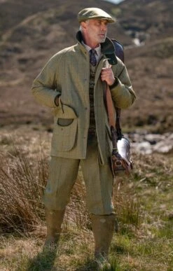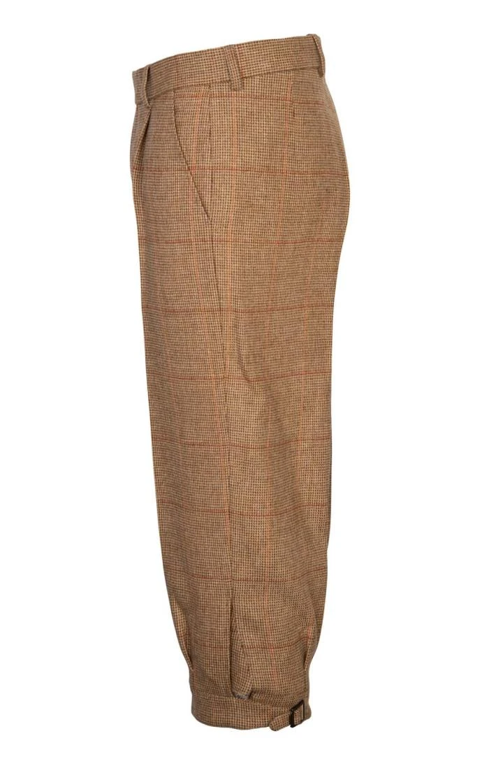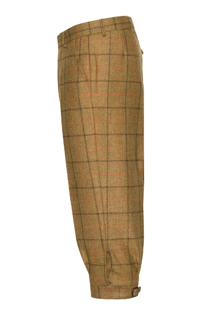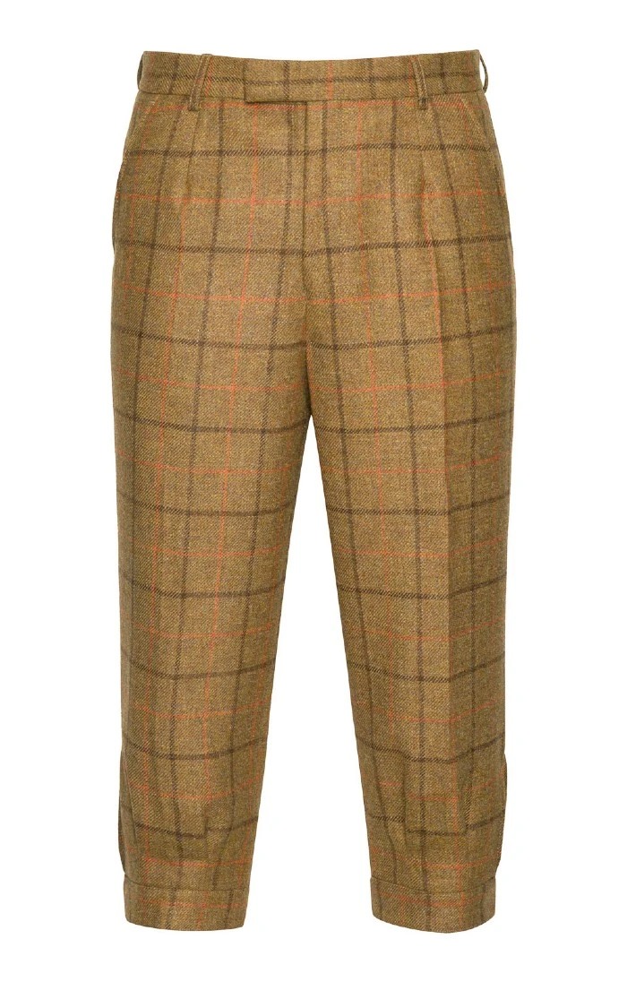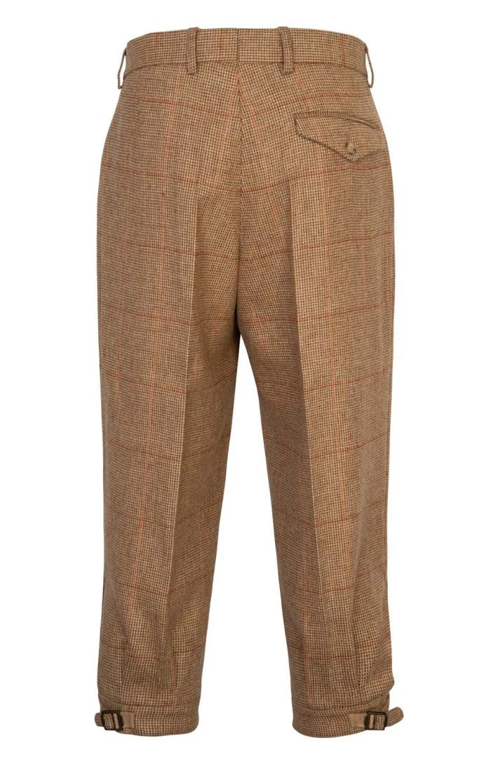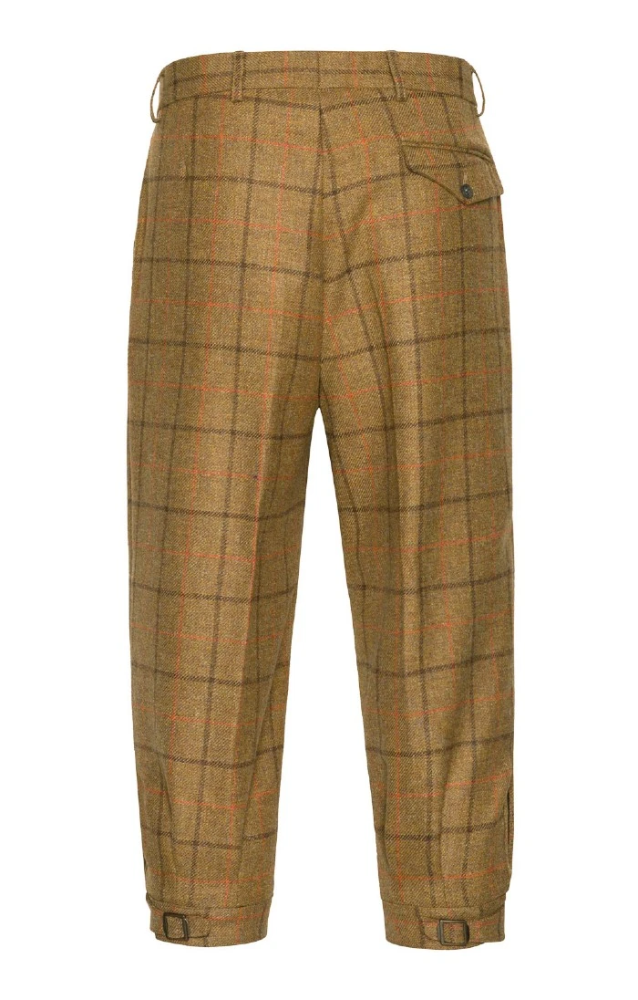 Traditionally cut with back belt, side pockets, a single hip pocket and buckle fastening at the calf, these Saxony tweed plus twos are a time-honoured sporting companion.