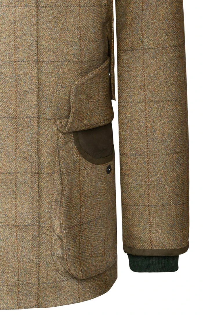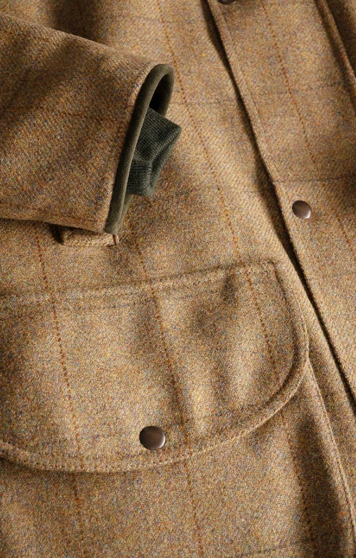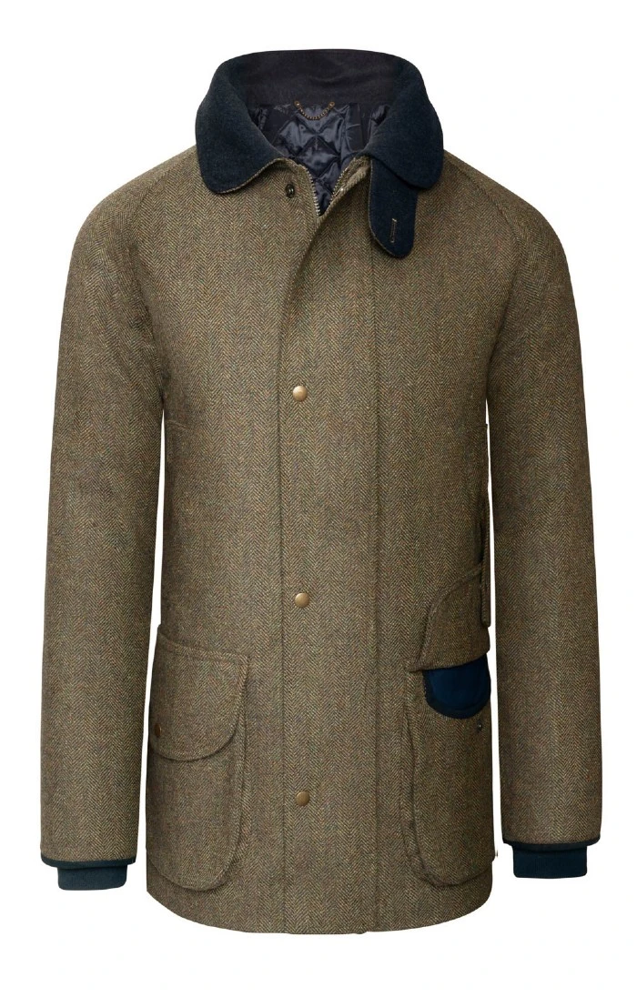 A modern take on a handsome country classic, this Scottish Saxony tweed shooting coat will keep you warm, dry and stylish. Cut to a comfortable fit from the finest tweed fabric, this jacket features two spacious bellows pockets to the front and hand warming pockets above, as well as a storm placket with push stud closure to keep you warm. Contrast collar and cuffs lend definition to this instant classic.