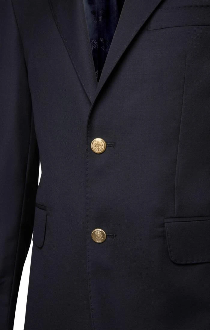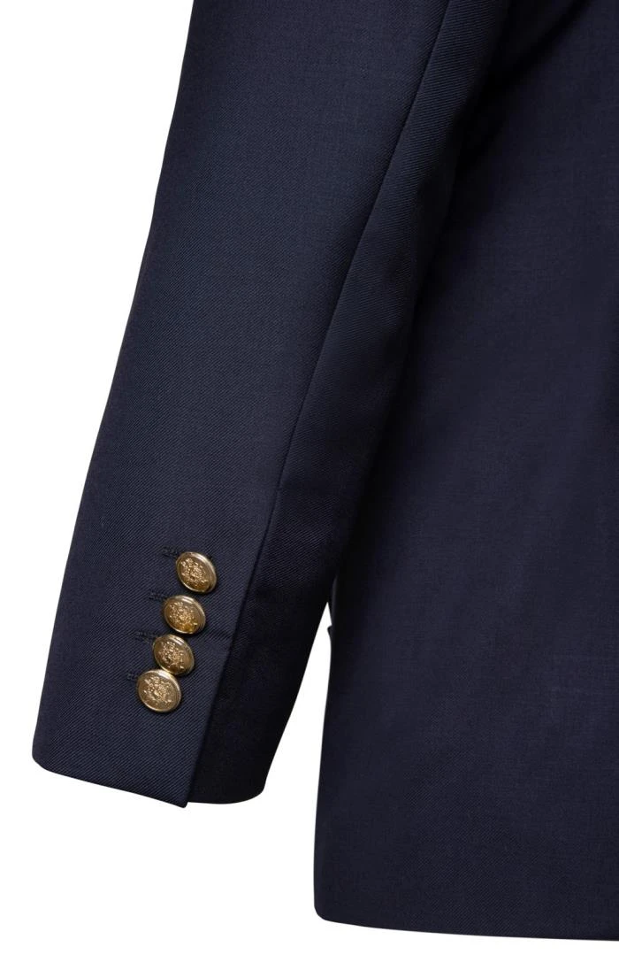 The epitome of effortless elegance, this single-breasted blazer in fine merino wool is finished with glittering gold-effect buttons, flapped lower pockets and a welted chest pocket. Hard to beat as a wardrobe staple, this quality edition of a style classic will see you seamlessly through no end of social occasions.