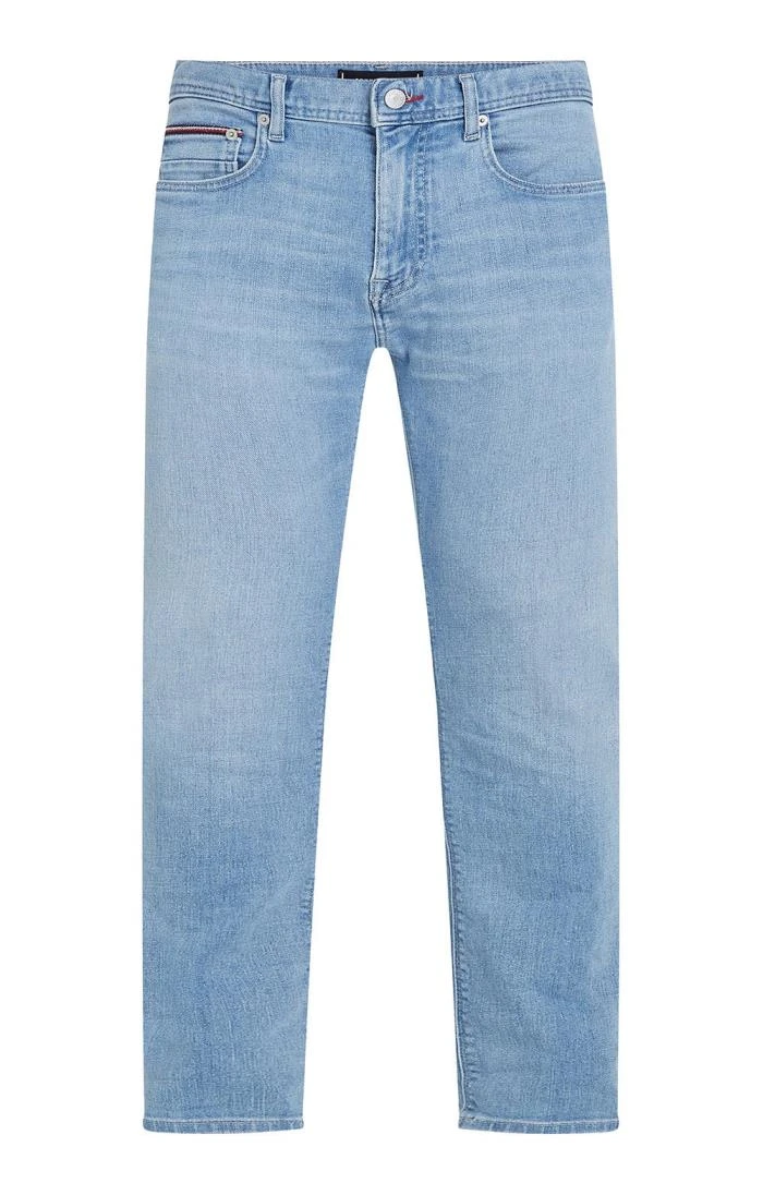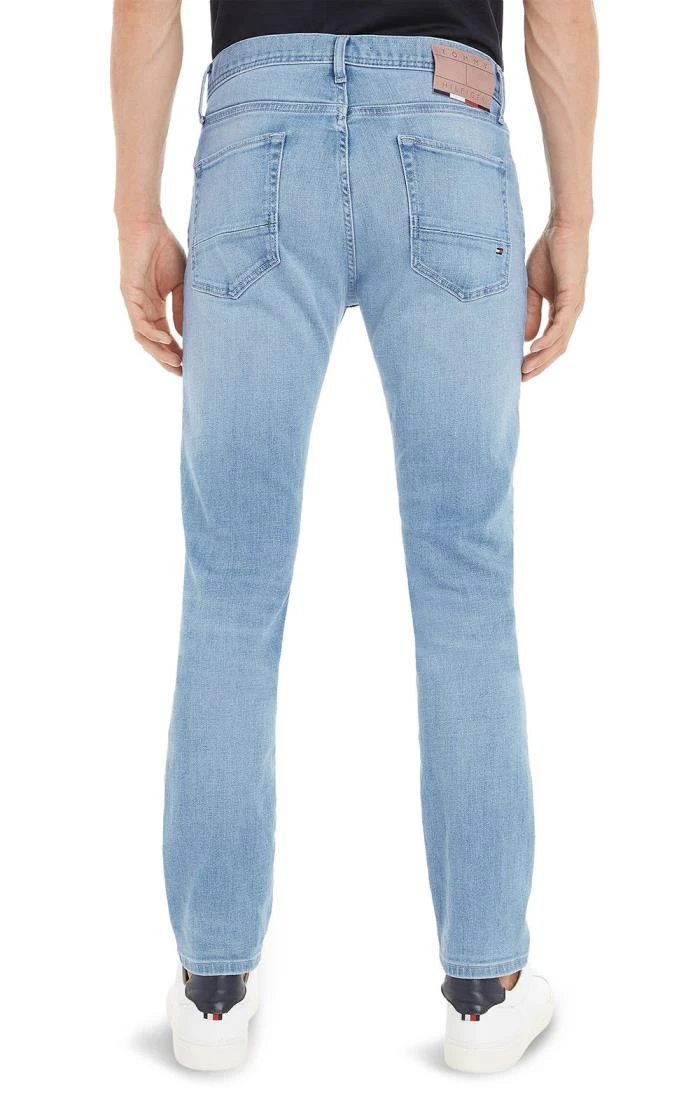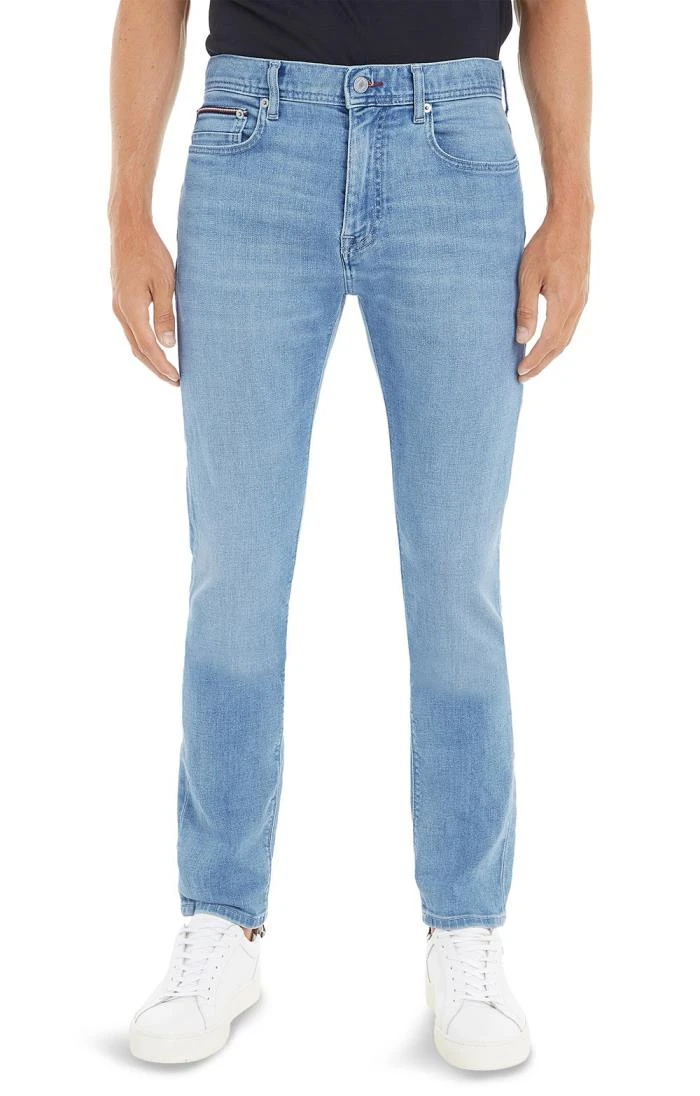 Enjoy effortless off-duty dressing in the Tommy Hilfiger Bleecker slim jeans in gently stretchy cotton blend. Stamped with signature Hilfiger branding for a hallmark of value and distinction, these slim-ft denims are traditionally styled in a five-pocket cut with zip and button closure. Complete this quality yet casual look with an iconic oxford shirt.