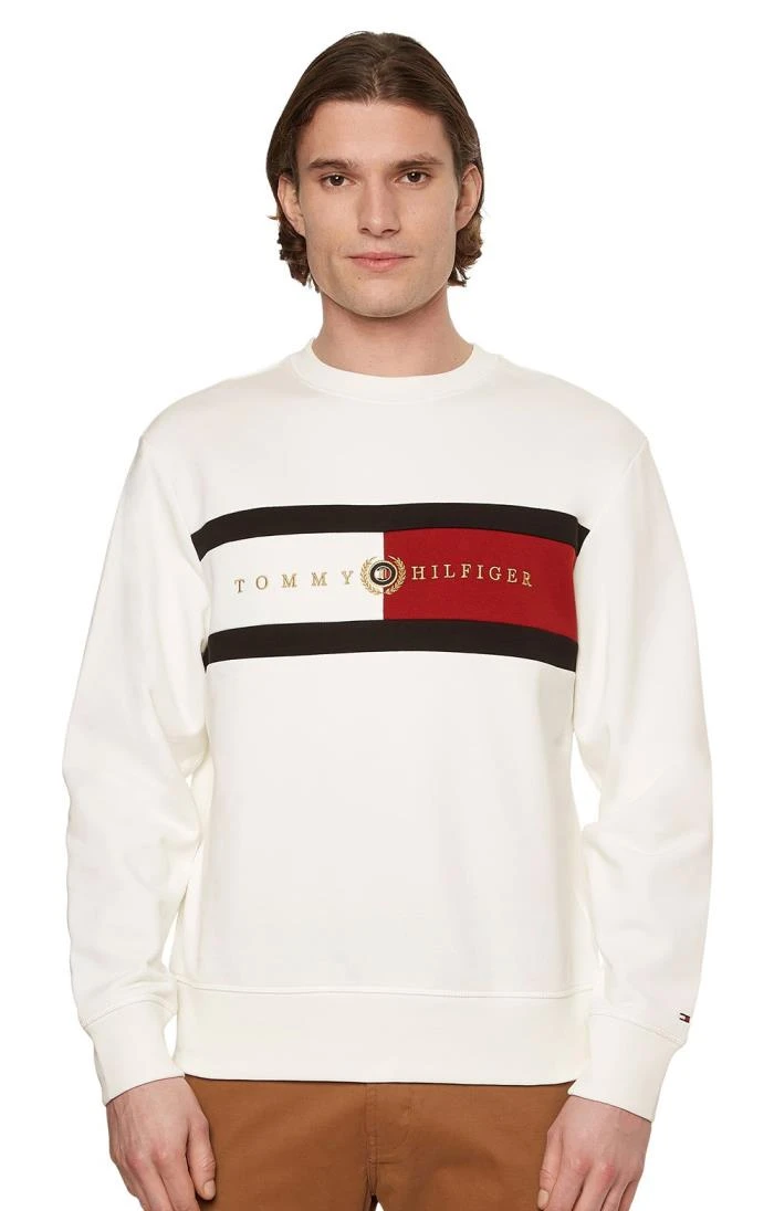 Make a statement with this bold men’s Tommy Hilfiger Icon crew neck jumper, crafted from premium organic cotton for a luxuriously soft feel. The large rib-knit insert across the chest features iconic Tommy Hilfiger branding, which is accented by discrete branding on the sleeve. This is an attractive sweater that makes layering effortless.