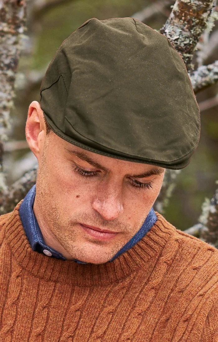 A classic wax flat cap made in the UK with British Millerain cotton.