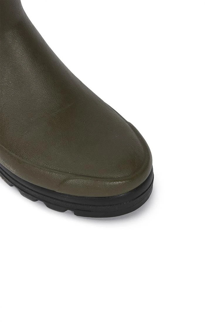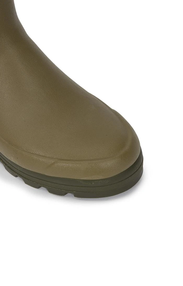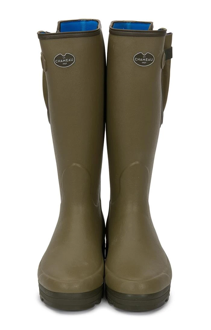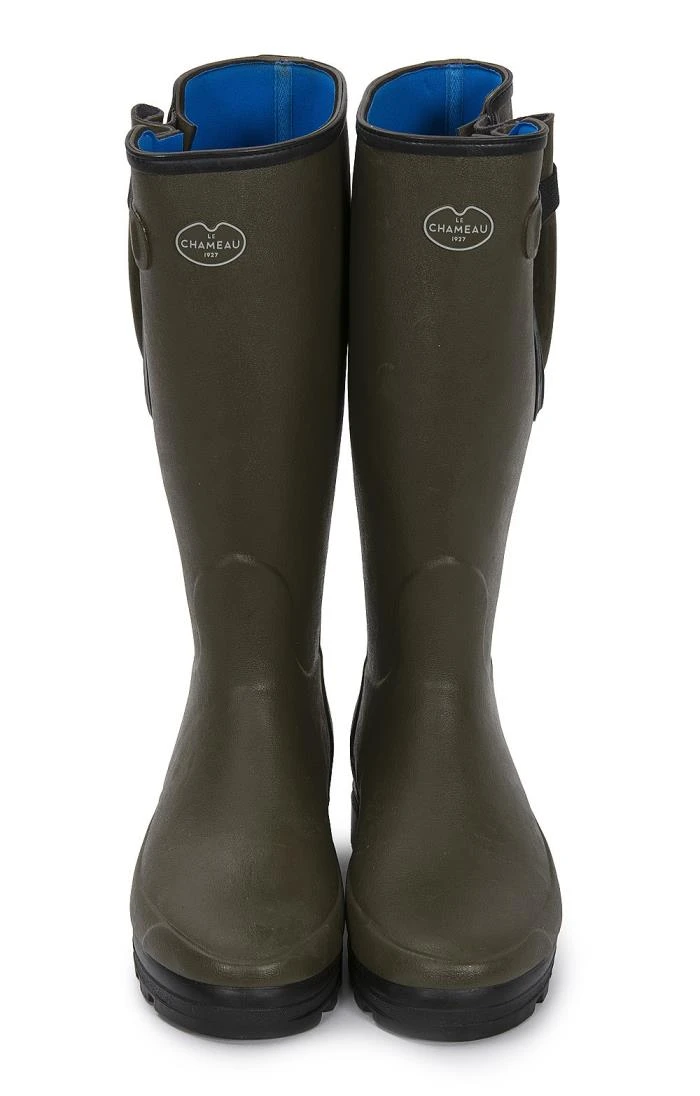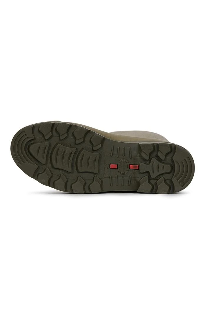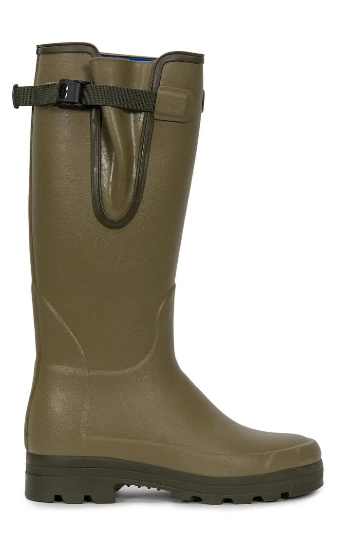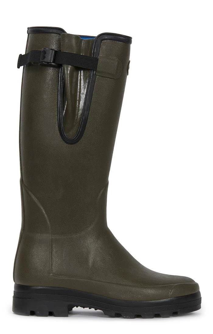 Adjustable cold-weather boot with waterproof gusset and tightening strap.