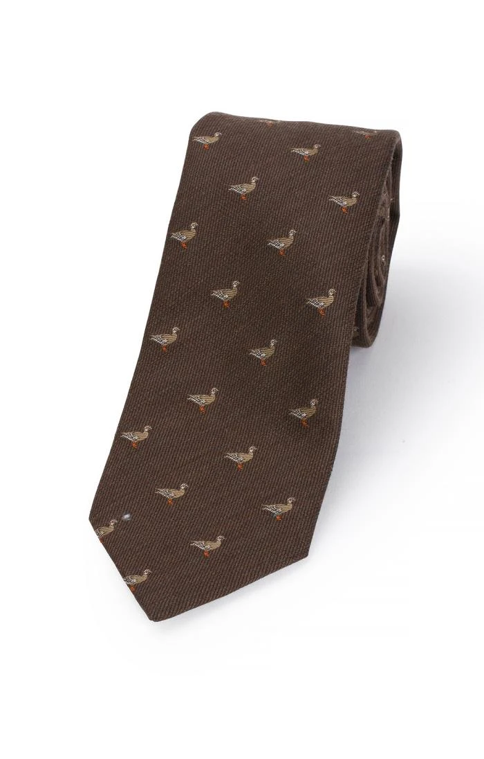 Lovers of country pursuits will adore this characterful partridge wool blend tie, decorated as it is with one of the nation’s most iconic game birds.