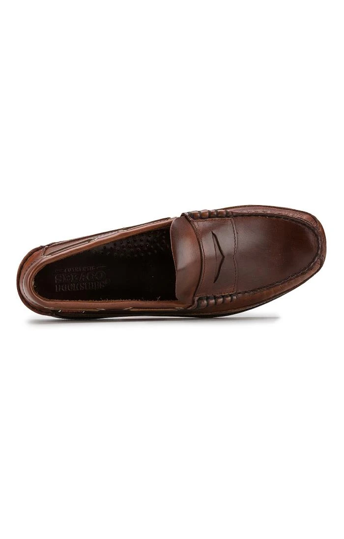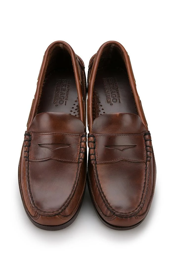 The Sebago penny loafer is a classic moccasin boat shoe that’s always in style. Advanced rubber non-slip soles with an EVA heel cup. Genuine moccasin construction wraps the foot in a single piece of leather, creating a fit that’s uniquely your own. Handsewn moccasin construction with a waxy pull-up leather upper, leather socklining, littleway stitched Sebago tech boat sole with slip-resistant, non-marking rubber and EVA cushion sole insert.