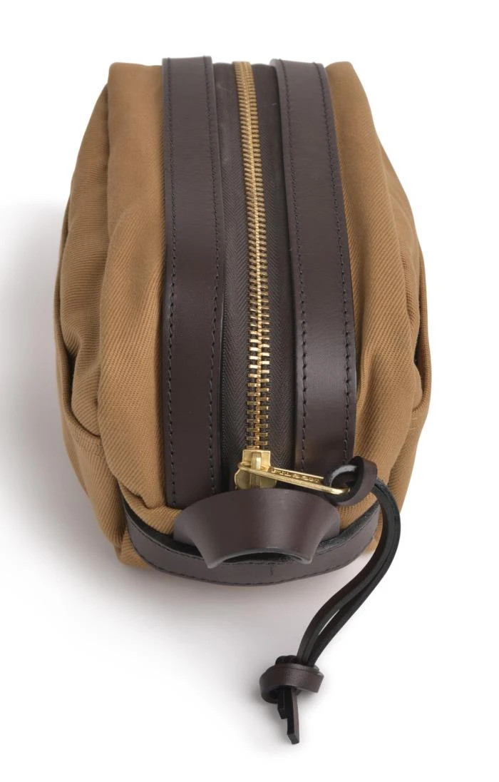 This attractive travel kit bag is perfectly sized for all your toiletries whether you’re hiking the wilderness or hopping on a plane. Crafted from a hardwearing twill fabric and coated with water repellent product, it features a rust-proof zip and a genuine leather handle.