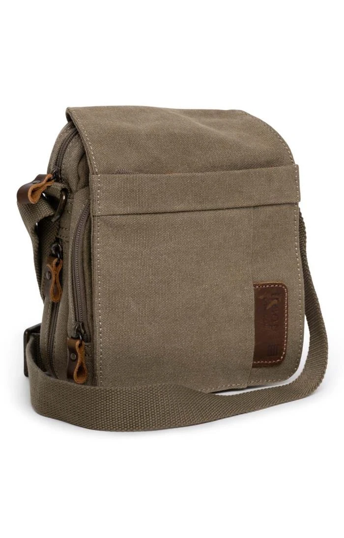 Modern and minimal, the flap over medium cross body bag by Troop London is a sturdy yet stylish canvas shoulder bag equipped with a range of secure sections. The roomy interior compartment is flanked by neatly zipped pockets while the oversized flap lifts to reveal practical slots for pens and phones. Brass and leather trims and Troop London branding deliver a finishing touch of contemporary style and quality.