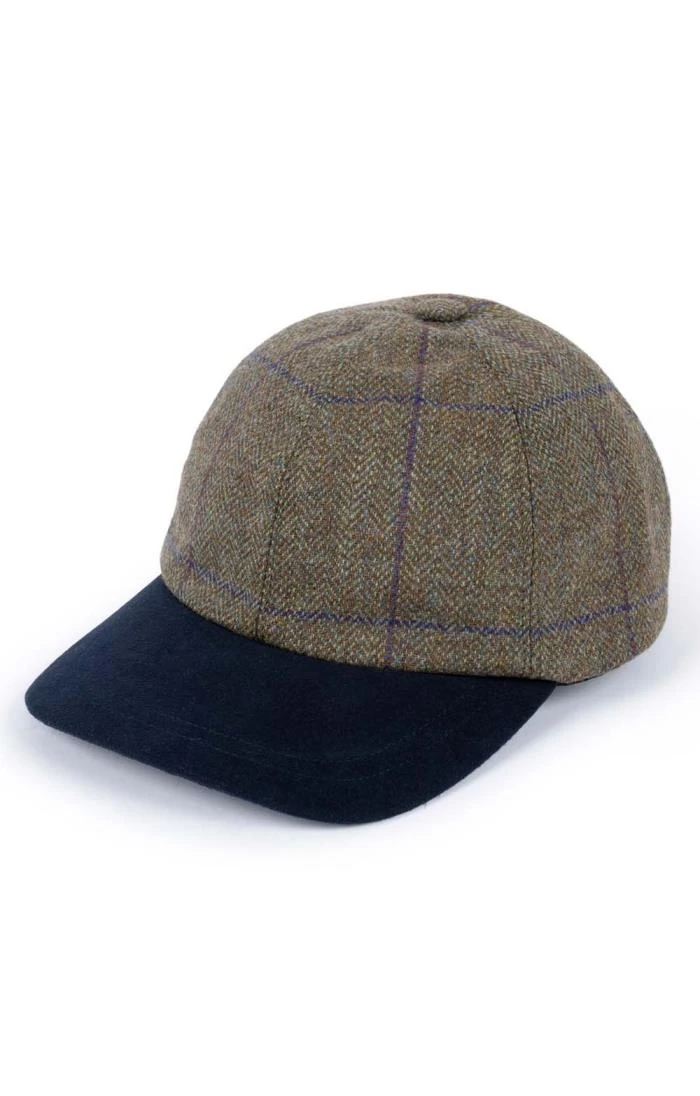 A traditional fabric is given a modern design twist in this tweed baseball cap with contrasting velvet-effect peak.